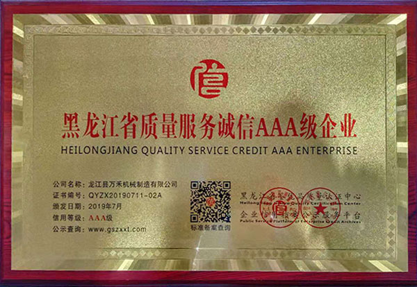 黑龍江省質(zhì)量服務(wù)誠信AAA級企業(yè)