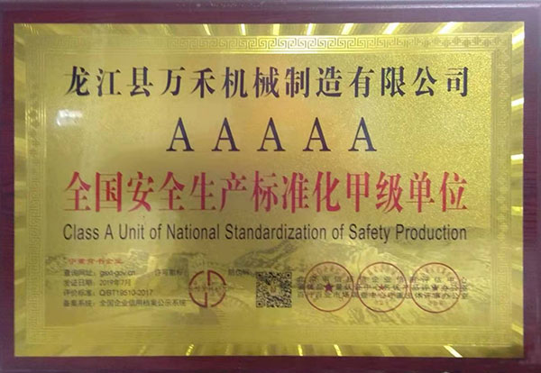 全國安全生成標(biāo)準(zhǔn)化甲級單位